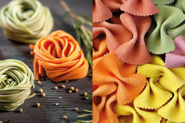 Poudres de légumes, mélanges d’épices, farines spéciales, poudres de champignons, assaisonnements et aromatisations sont les ingrédients idéaux pour développer des pâtes hautes en goût et en couleur !